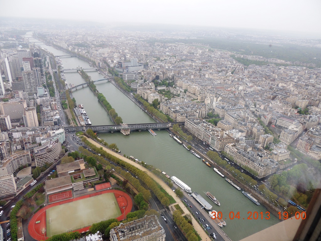 ఈ టవర్ లో వాడిన లోహాలు తుప్పు పట్టకుండా ఉండేందుకు ఏడు సంవత్సరాల కొకసారి 50 నుంచి 60 టన్నుల పెయింట్ ను వాడుతారు. భూమి మీద నుంచి చూసే వీక్షకుడికి ఇది సమదృష్టి కోసం మూడు రకాలైన రంగులను ఉపయోగిస్తారు, బాగా ముదురుగా ఉన్న రంగు క్రింద భాగంలోనూ, లేత రంగు టవర్ పైభాగం లోనూ వేస్తారు. దీనికి 2 అంతస్థులు ఉన్నాయి మొదటి అంతస్థు వరకే అయితే 11 యూరోలు టికెట్ , అదే చివరి వరకు అయితే 17 యూరోలు. మేము మొత్తం పైకే వెళ్ళాలని నిర్ణయించుకున్నాం. మేము టికెట్ తీసుకుని పైకి వెళ్ళటానికే గంట పట్టింది. ఇలా 365 రోజులు జనాలు క్యూ లో పైకి వెళుతూనే ఉంటారు. పై నుండి పారిస్ నగరం మొత్తం అద్భుతంగా కనిపించింది. నగరం మొత్తం అందులో భవనాలన్నీ ఎవరో పెయింట్ వేసిన కాన్వాస్ లా అనిపించింది. అక్కడి నుండే గుయ్ మెట్ మ్యూజియం ఎక్కడుందా అని వెతికాను. నా దగ్గరున్న మాప్ ప్రకారం చూస్తే గుయ్ మెట్ ఈ టవర్ కి దగ్గరలోనే ఉండాలి. టవర్ కి అభిముఖంగా దగ్గరలోనే ఈ మ్యూజియం కనిపించింది. అక్కడినుండే ఒక ఫోటో తీశాను.